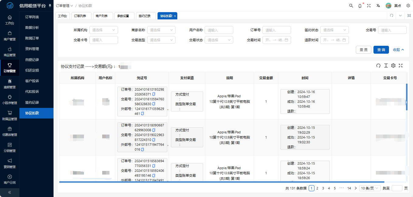 # 协议扣款 商家使用银联代扣对用户账单金额进行扣款的扣款记录
