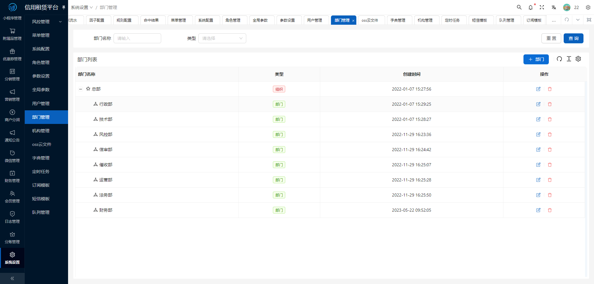 # 页面展示 该页面可以添加部门  # 新增 部门名称:部门的名称 上级部门:部门的上级部门 类型:部门的类型